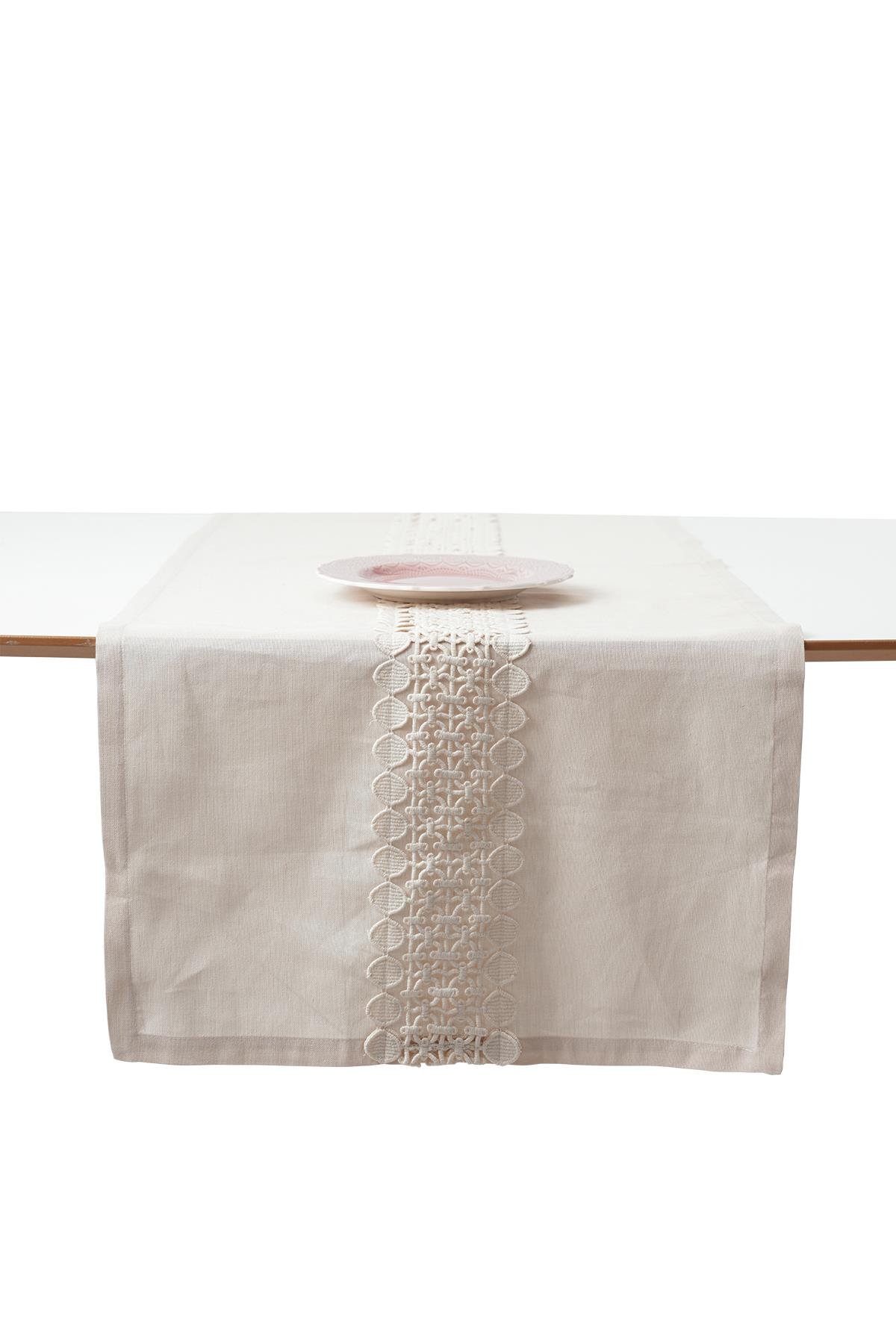 Dantel Detaylı Krem Masa Bandı